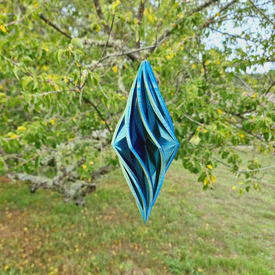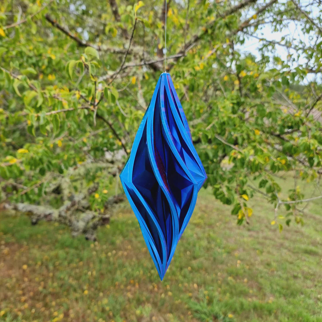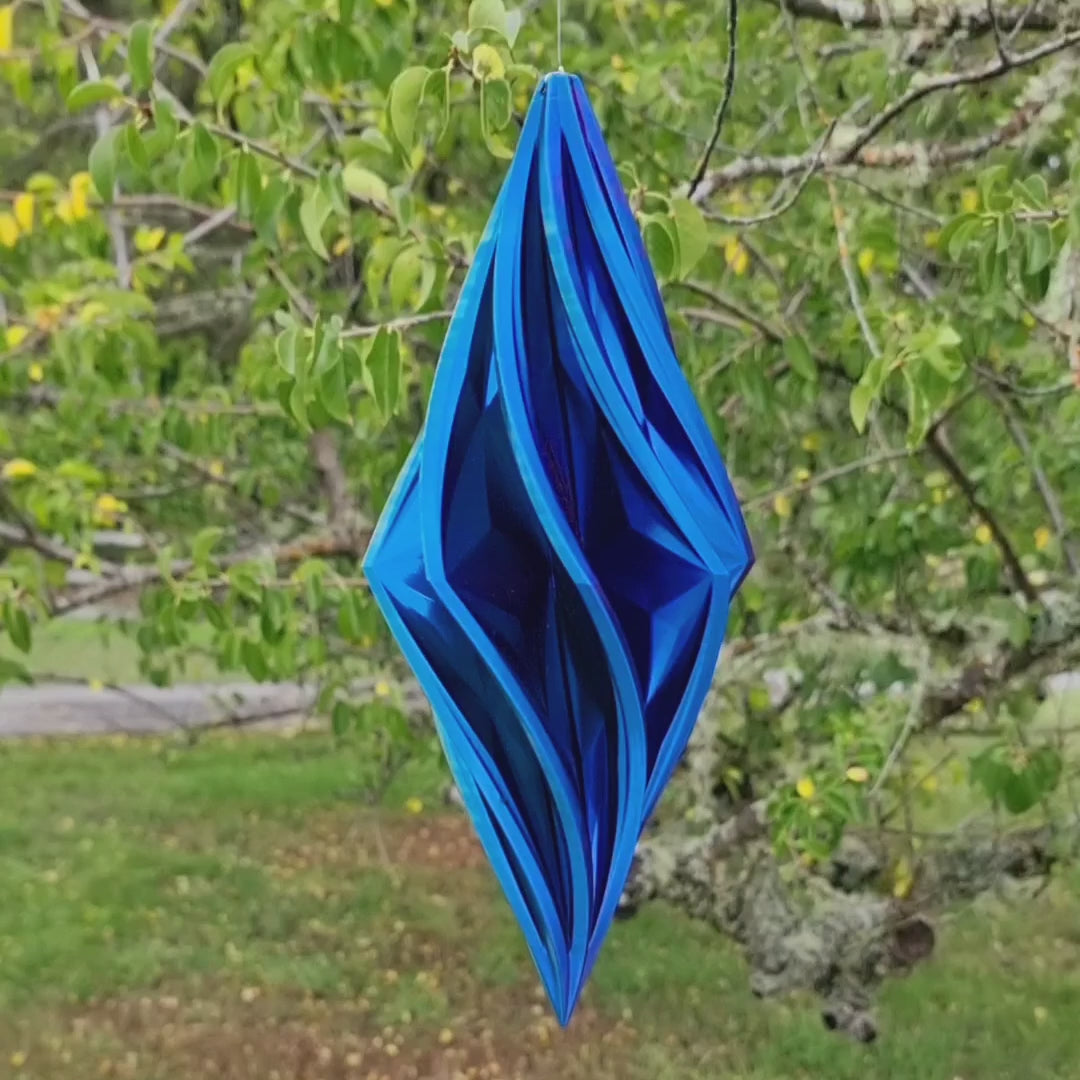 Diese neue Variante des Windspinners spielt mit Formen natürlicher Kristalle. Dabei entsteht ein raffinierter Kontrast zwischen runden und geraden Kanten. Ein weiterer Hingucker!
