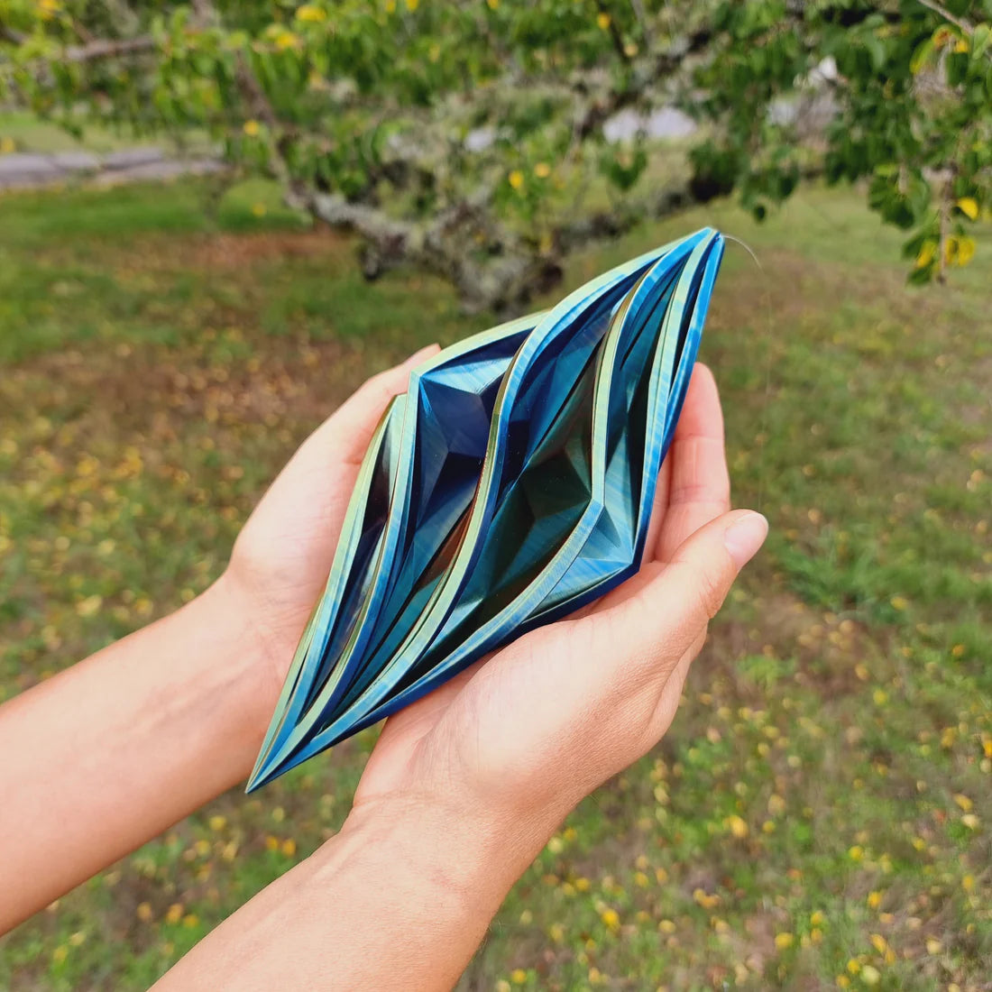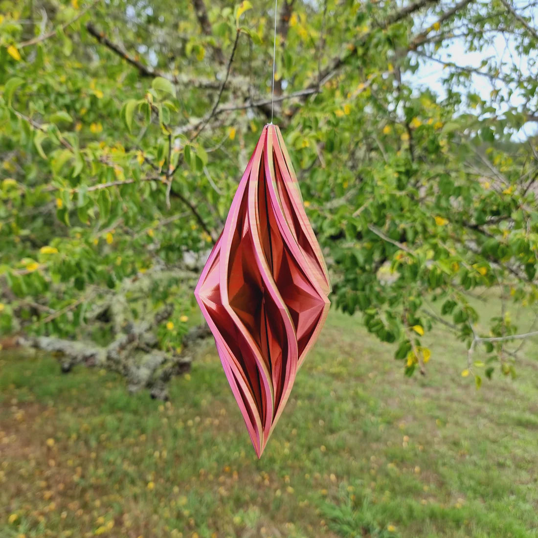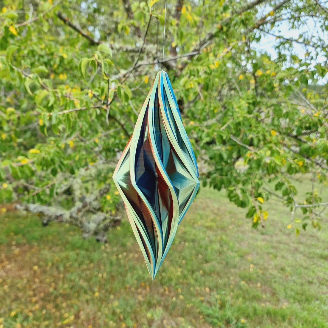 Diese neue Variante des Windspinners spielt mit Formen natürlicher Kristalle. Dabei entsteht ein raffinierter Kontrast zwischen runden und geraden Kanten. Ein weiterer Hingucker!
